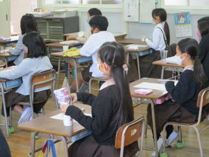 今日は、4・5年生が歯にフッ化物洗口をしました。