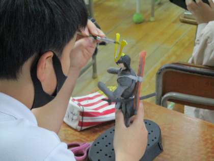 6年生は今、図画工作科の時間に、芯材と紙粘土による立体造形をしています。