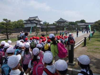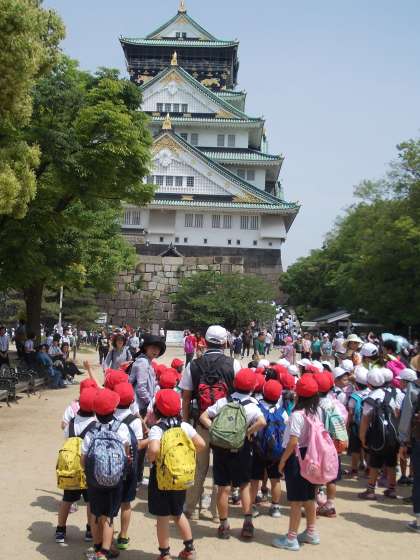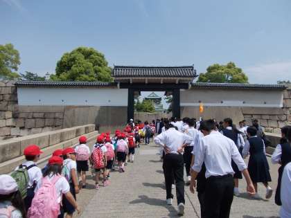 大阪城は、観光客、修学旅行生で超満員でした。天守閣に登るのは断念しました。