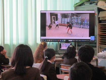 講堂で活動する班と、教室で動画をもとに活動する班とに分かれてしました。