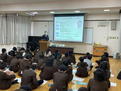 「薬は水以外で飲んでもいいのでしょうか?」「同じ症状なら、家族の薬を自分も飲んでいいのでしょうか?」薬にまつわる様々な疑問を、実験もしながらその理由とともに解説されていました。薬の正しい服用方法を知ることは、とても大切ですね。今日の学習を今後にも生かしてほしいです。