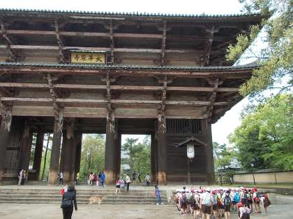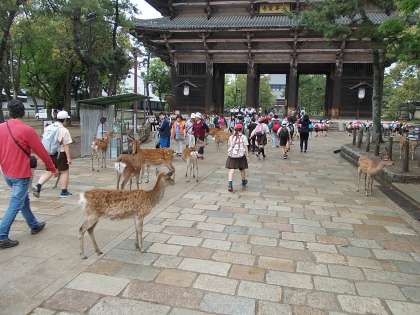 奈良公園では、シカが出迎えてくれました。東大寺も超満員です。
