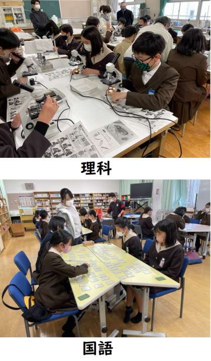 事前に希望調整していた各教科の授業を1時間体験したあと、クラブの見学も行ないました。「レベルが高くてちょっと不安。」「クラブ楽しそう。何部に入ろうかな」「新しい友達できるかな」と、子どもたちは中学校生活に対するいろいろな思いを抱いていました。小学校生活も残り少なくなってきましたね。1日1日を大切にしていきましょう!