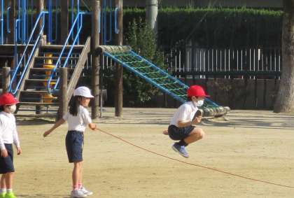 それぞれが跳ぶ練習をしたあと、大縄跳びにも挑戦しました。