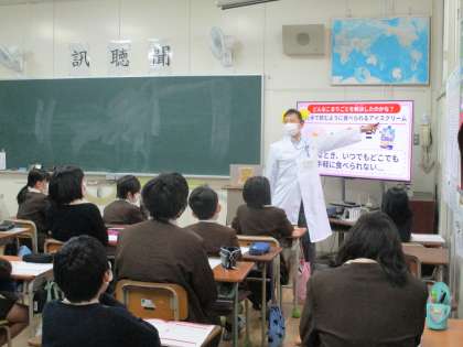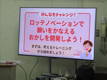 「願いをかなえるお菓子を考えよう」というテーマにそって、消費者の願いを考え、それをどのように取り入れて商品を開発するか、イノベーションを起こせるか、ということをグループで話し合いました。社会の人々の願いを実現するために様々なこと考えることは、社会で生きるための基本的な考えであり、キャリア教育の礎です。