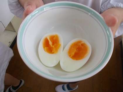 ゆで時間をかえることで、黄身のかたさが かわることが分かりました。