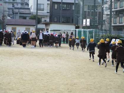 今日は土曜授業で、避難訓練と防災学習をしました。