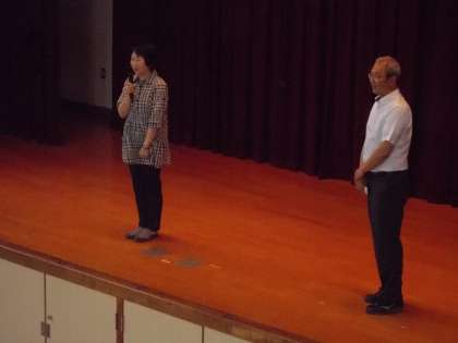集会のあと、新しい先生の紹介がありました。島本妙孝(たえこ)先生です。