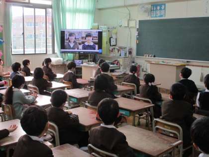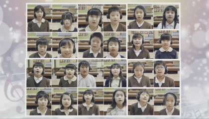 本来は1月の予定でしたが、コロナ感染症の第6波の影響が大きく、全体での合唱もできない状態でした。そこで2年生は音楽室で一人ずつ歌うことにし、その様子を撮影しました。映像を重ね合わせることで歌声が重なり、本当の合唱のような響きになって、子どもたちも感動していました。