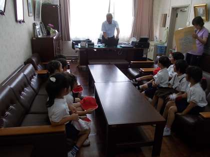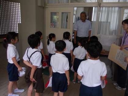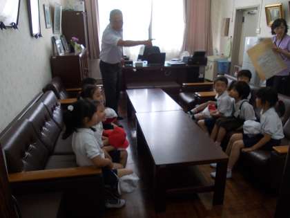 生活科の学習で、学校を探検して、色々な人にインタビューしていきます。今日は、校長先生です。