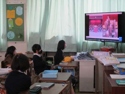 今日は、1年生の音楽集会の様子を動画で見ました。