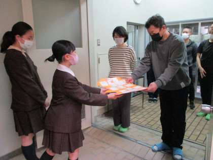 受け取った調理員さんも、渡した子どもたちも、とてもうれしそうでした。