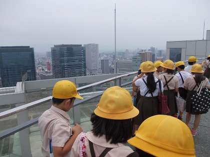 スカイビルの展望台から、大阪の町をぐるりと見渡しました。
