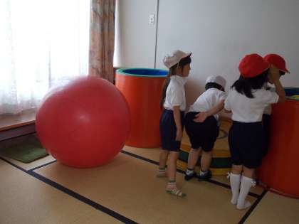 くすのき教室には、体のバランスを鍛えるバランスボールや、