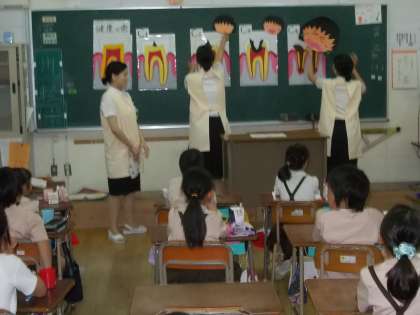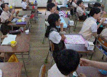 なにわ歯科衛生専門学校の学生さんたちに、むし歯のでき方や歯の磨き方を教わりました。そして、希望者にフッ化物塗ってもらいました。