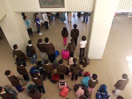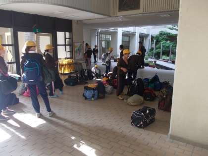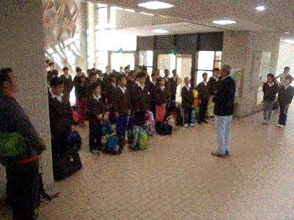 6時45分頃からぞくぞくと集まり、健康観察カードを提出し、出発式をしました。