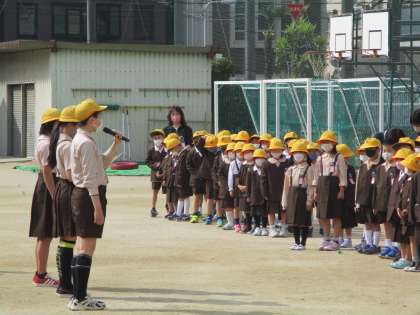 今日の1時間目に、新1年生と、2〜6年生の対面式をしました。