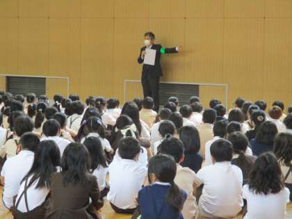 校長先生のお話の後、大淀警察の防犯課の方のお話も聞きました。