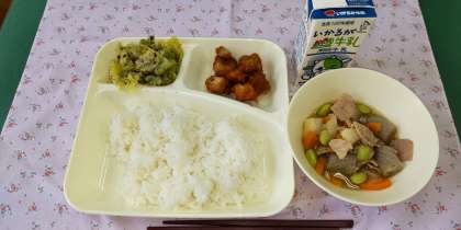 「これは、からあげ?」(まぐろのオーロラ煮です。)