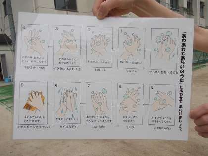 全校朝会で、健康委員から、正しい手洗い・うがいの習慣が身につくように呼びかけがありました。