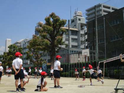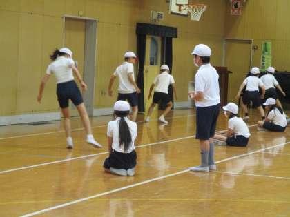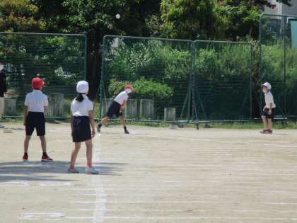 それぞれの学年が、決められた種目の記録に取り組んでいます。
