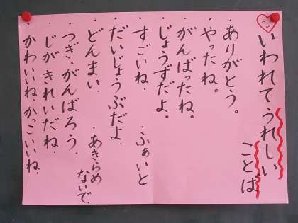言われてうれしい言葉を集めました。そんな言葉をたくさん使える人になってほしいです。