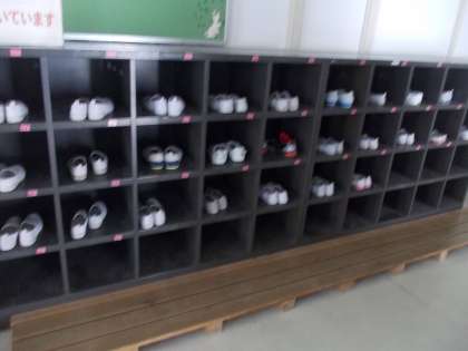 昨日の環境美化委員会の発表の通り、きれいに靴が並んだ下足箱です。感動!