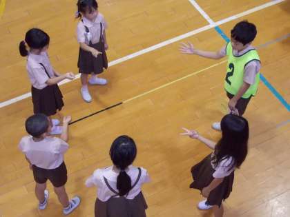 円になり、リーダーに負けた人の数だけ時計回りに回ります。一定の時間が来てストップの合図があったときにリーダーだった人が今日のラッキーさんです。