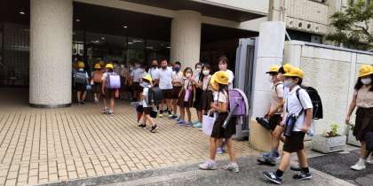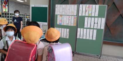 朝の登校時には、児童会の委員が玄関に立ってあいさつを呼び掛けています。