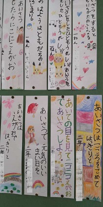 一人一人が考えたあいさつの標語には、すてきな言葉がたくさん!