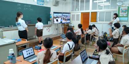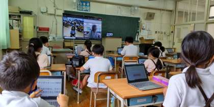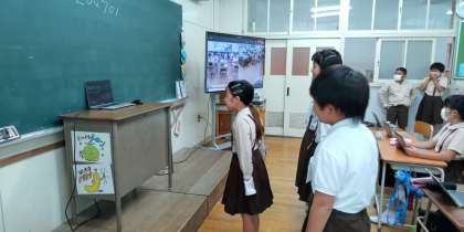 東成区の今里小学校の3年生と、オンライン交流を行いました。