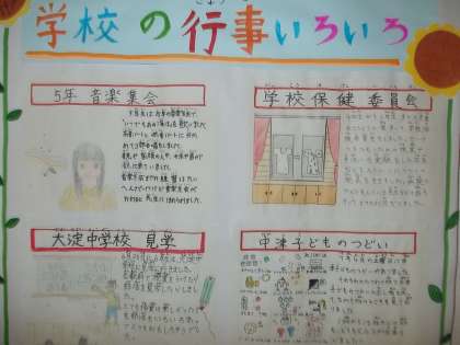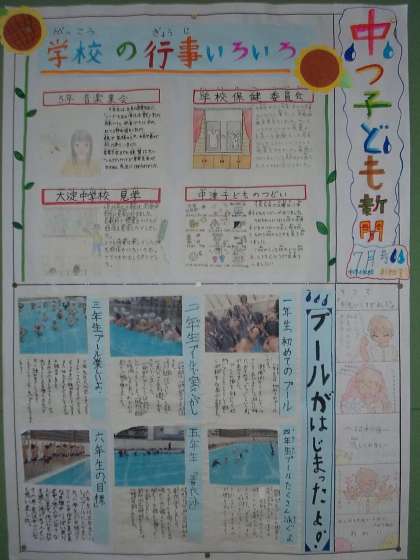 行事とプール水泳特集号です。各学年にインタビューをして、記事を書いています。「言語活動の充実」につながる活動の一つです。
