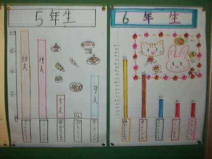 低学年はカツカレー、高学年はフルーツ白玉・カツカレー・煮込みハンバーグ・から揚げと意見が分かれました。ふたば給食の調理員さん、いつもおいしい給食をありがとうございます。