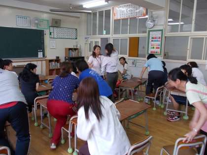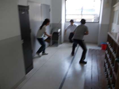 不審者が学校に侵入してきた想定で、教職員で防犯研修会を行いました。