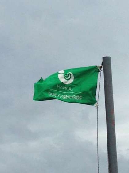 避難訓練も無事終わり、オリエンテーリングの開始です。風がとっても強いですが、歩いてる子ども達には心地よいようです