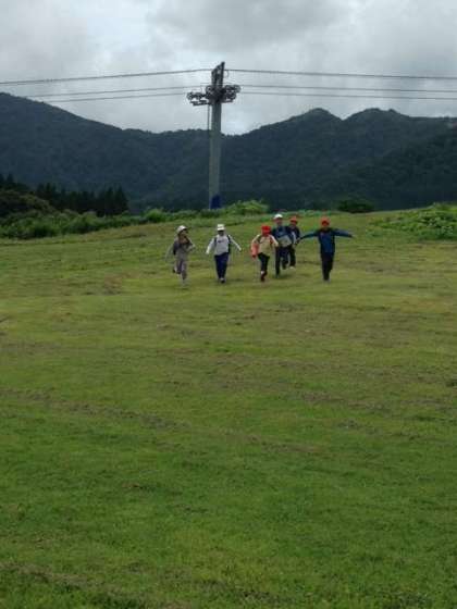 避難訓練も無事終わり、オリエンテーリングの開始です。風がとっても強いですが、歩いてる子ども達には心地よいようです