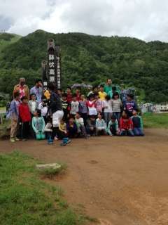 オリエンテーリングの後はモニュメントの前で記念撮影です