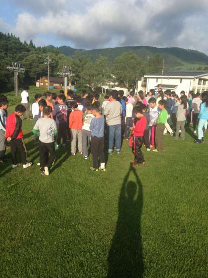 6時28分朝の会です。いい天気です。私の影が.…