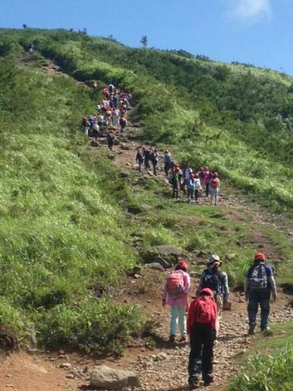 登山道も貸切状態です。夏休みに入った林間シーズンには、子どもの列が数珠繋ぎになるんです。今の時期だから鳥の声もよく聞こえます。