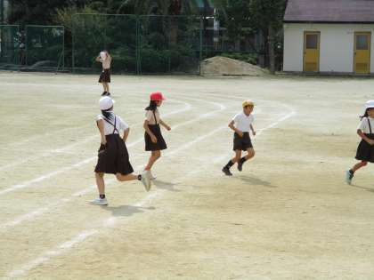 影ふみ遊びで、どうすればうまく逃げられるか考えて走ります。