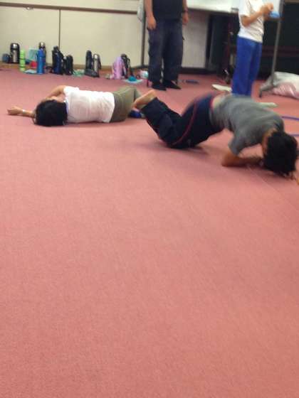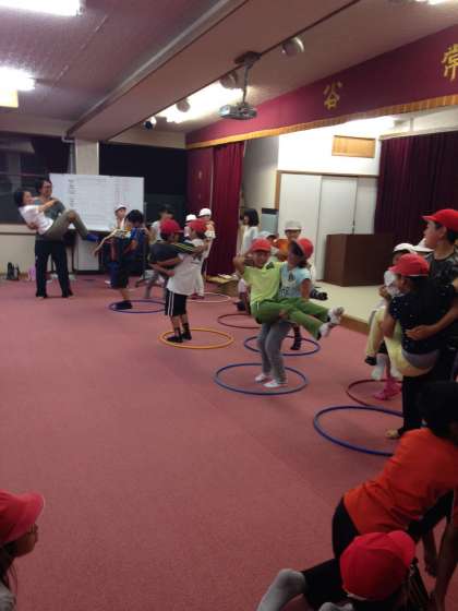 子ども達のリクエストで岩鼻先生が東郷先生をだっこしています