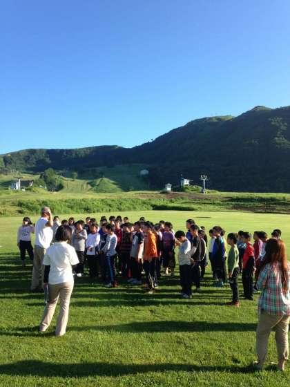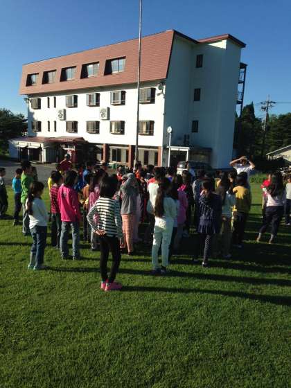 3日目朝の会。長ズボンでない人が3人いますが(残念)、時間通り始められました。