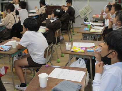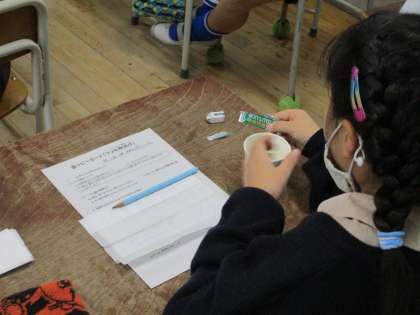学習の後、フッ化物でぶくぶくうがいをしました。