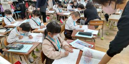 スイミーの勇気やかしこさに気がついていく1年生です。