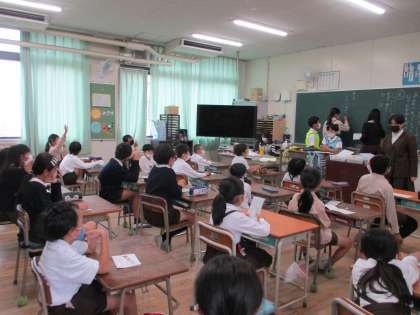 服部緑地公園でのオリエンテーリングの進め方やめあて、役割分担を話し合いました。