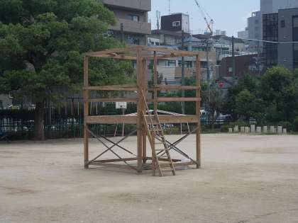 午前10時にはまだ組み立てられてませんでしたが、12時には骨組みができていました。