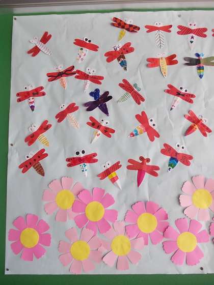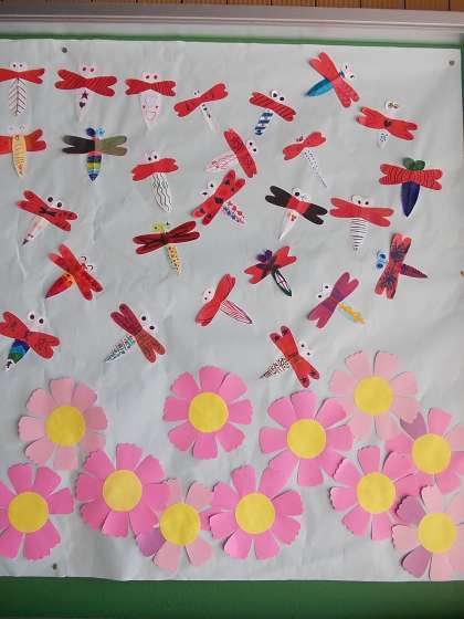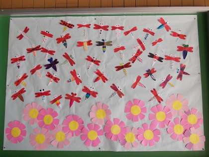 3年生の作品です。いろんな赤とんぼ君たちがいます。