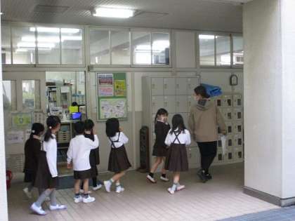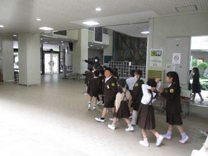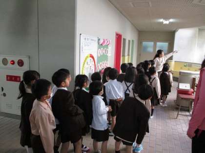 1年生は、クラスごとに学校のいろいろな場所を歩いて回りました。