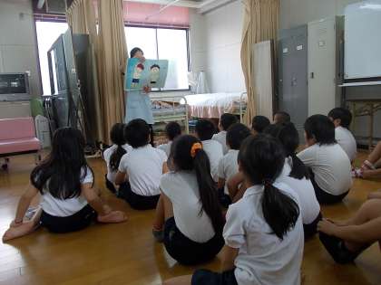 発育測定の前に甲斐先生から運動会に向けて、「規則正しい生活をしましょう」という話がありました。