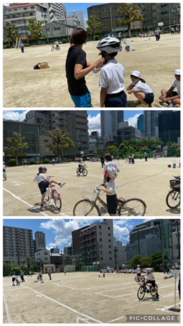 低学年は安全な歩行、中高学年は安全な自転車の走行について、お話を聞いた後に実際に歩行したり走行したりしました。